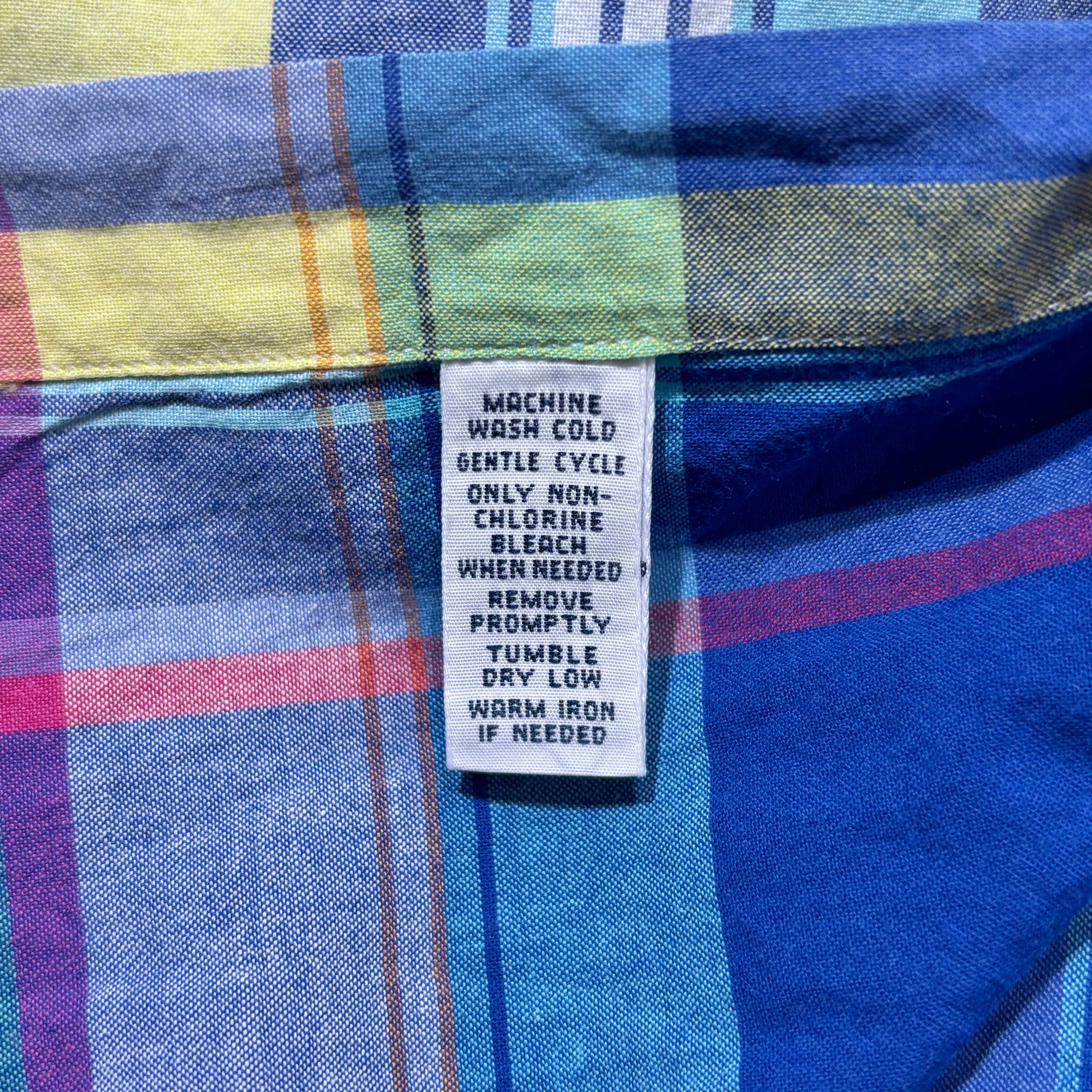 ブルーベースのチェックの配色が爽やかなシャツです。