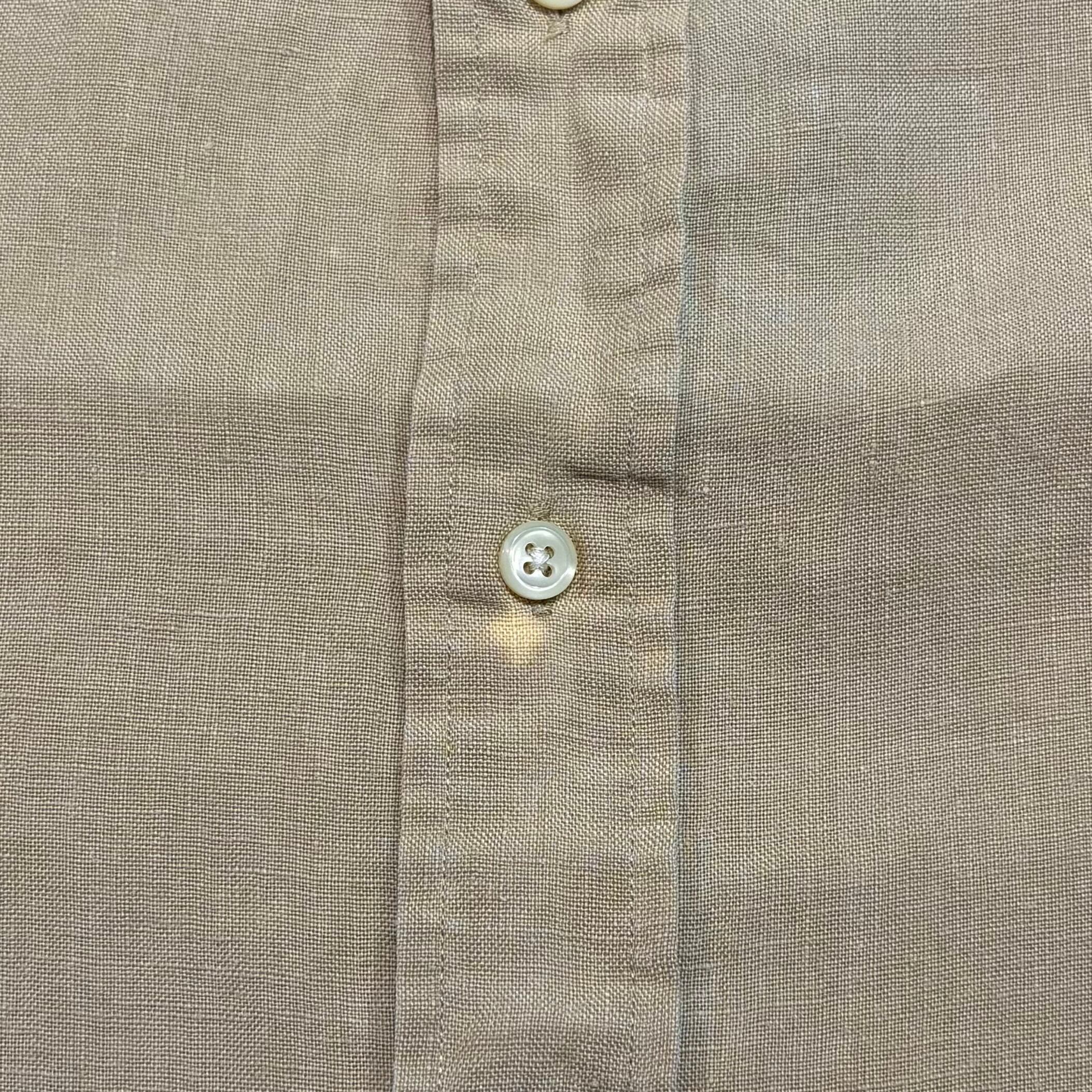 100%リネンの涼しげなシャツです。ゆったりめのLサイズになります。薄手のベージュなので使い勝手は良いほうだと思います。シンプルにスラックスなどと合わせていただくのがおススメです!
