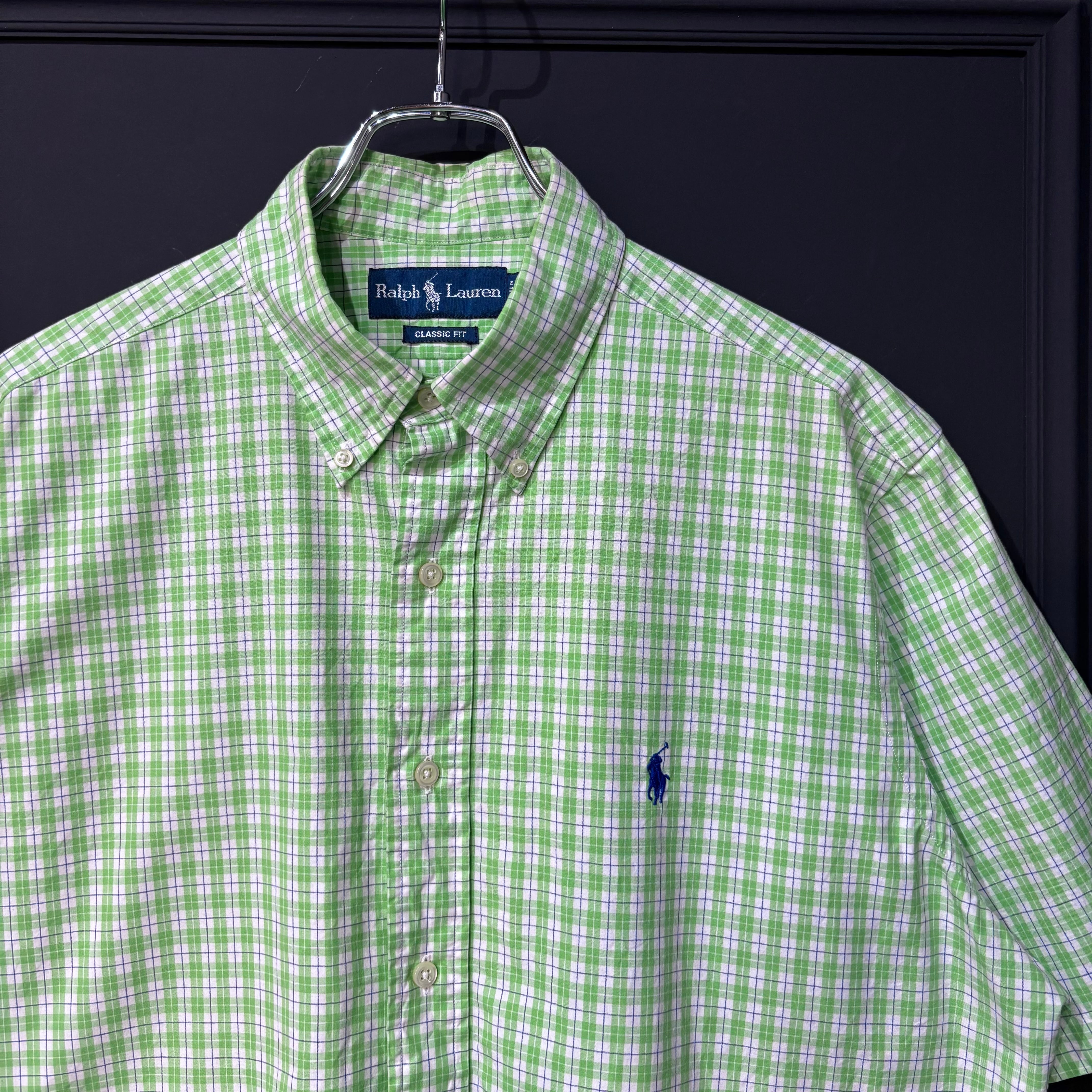 90〜00s Ralph Lauren CLASSIC FIT チェックシャツ ライトグリーン