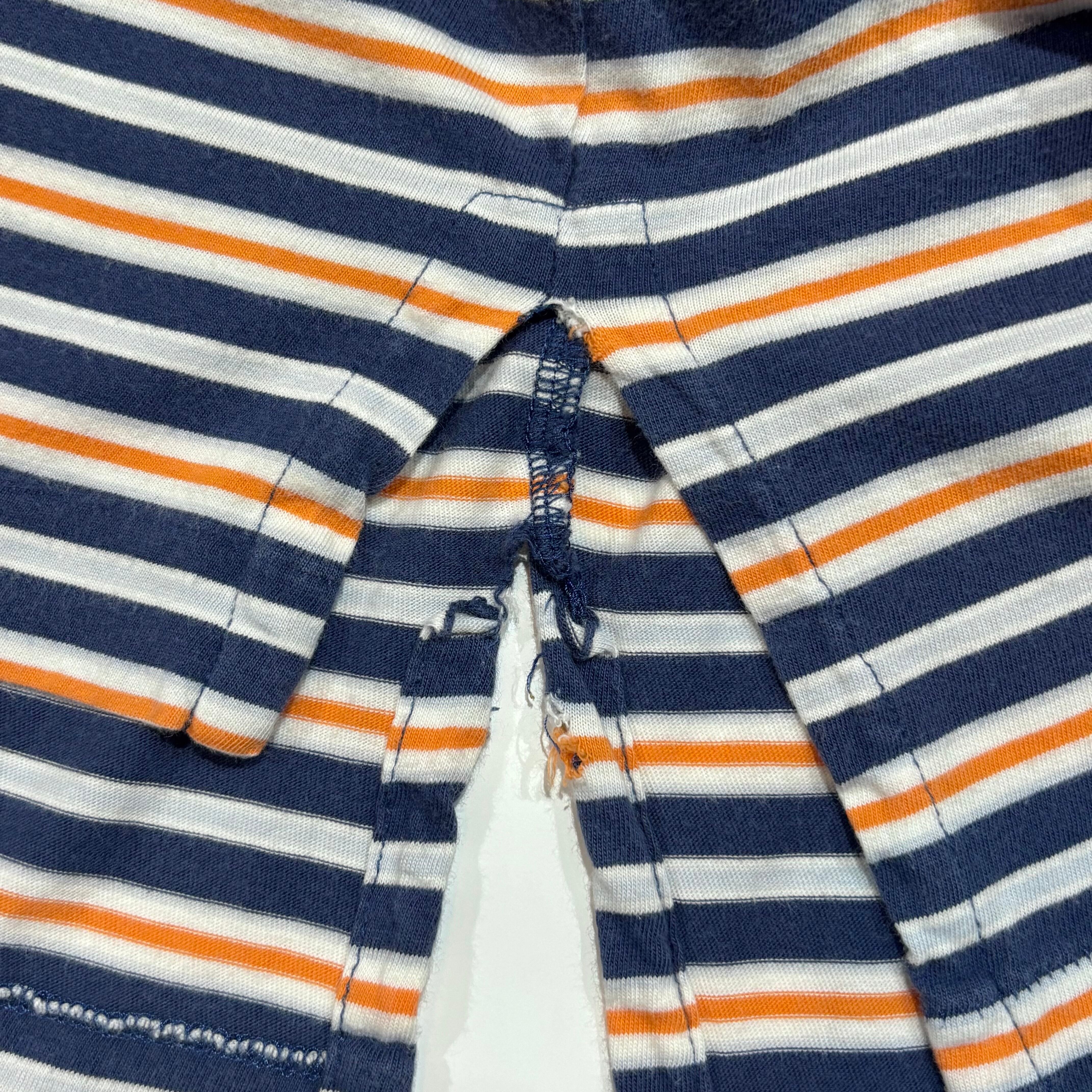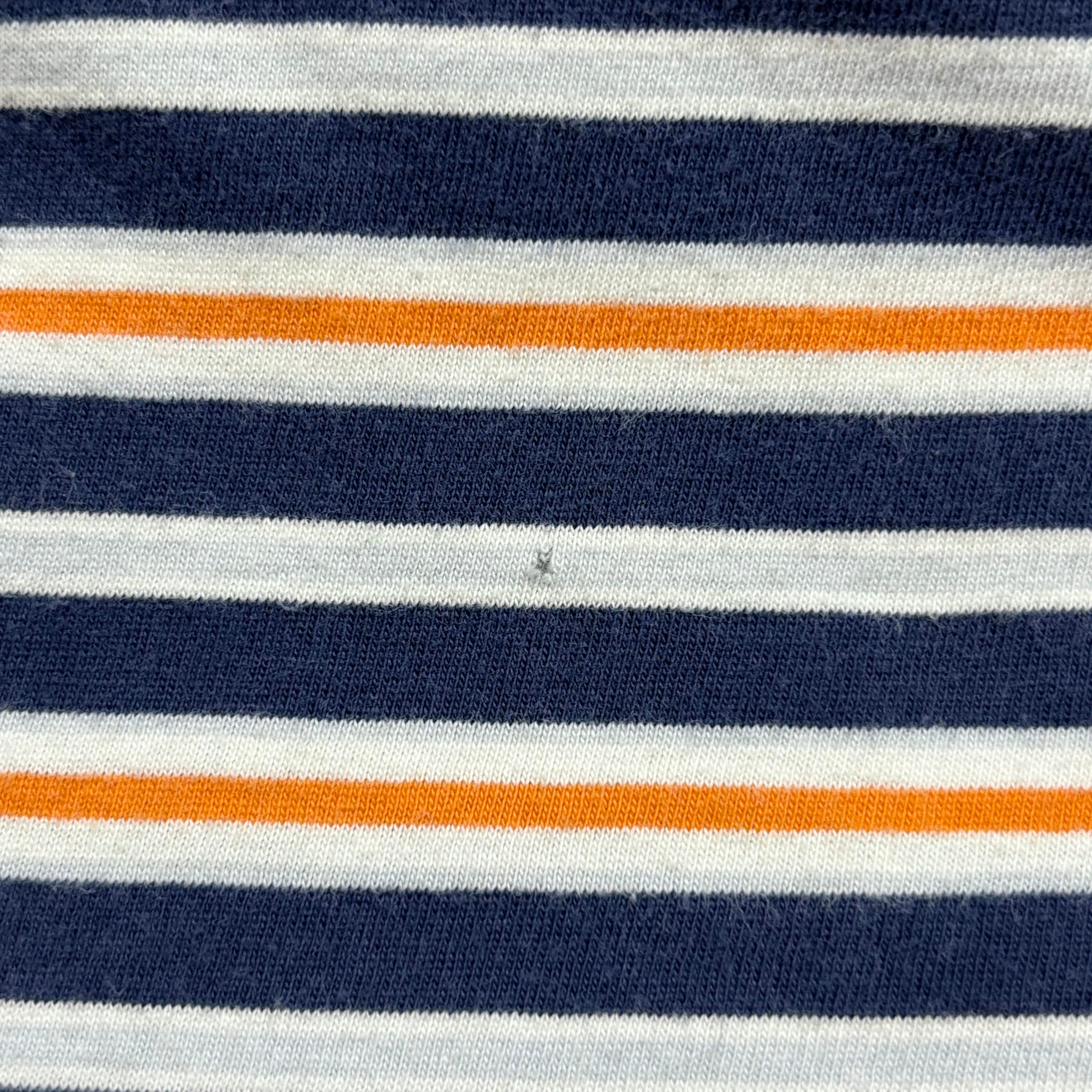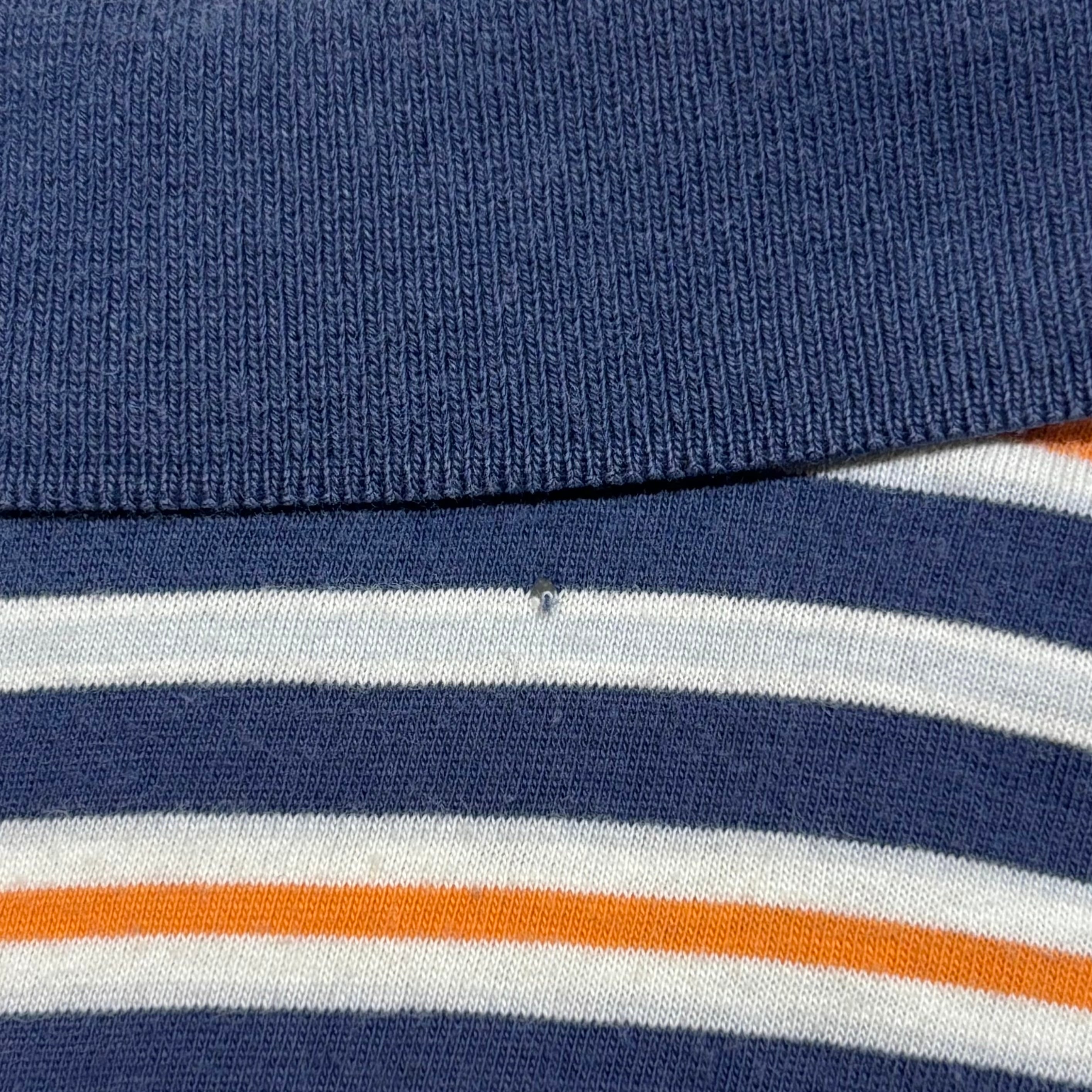 配色が良いボーダーのポロシャツです。鹿の子生地ではなく、Tシャツにあるような薄手の柔らかいコットン生地なので着心地◎です。こちらは日本のMに近いサイズ感です!