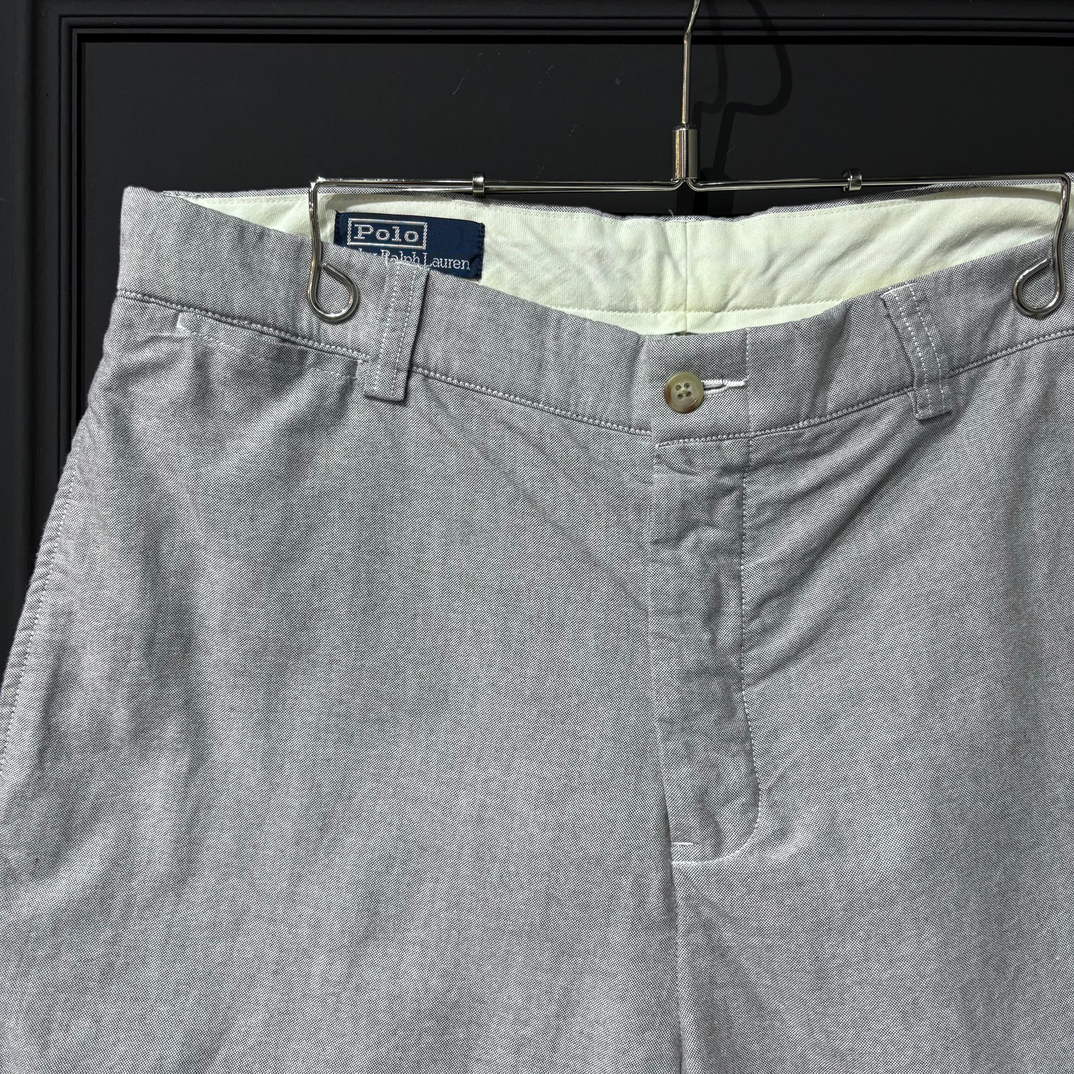 シンプルなデザインに明るめのグレーシャンブレーで、単純にカッコいいショーツだと思います。ラルフローレンのパンツではあまり多くないボタンフライタイプです。店主イチオシの一着です!