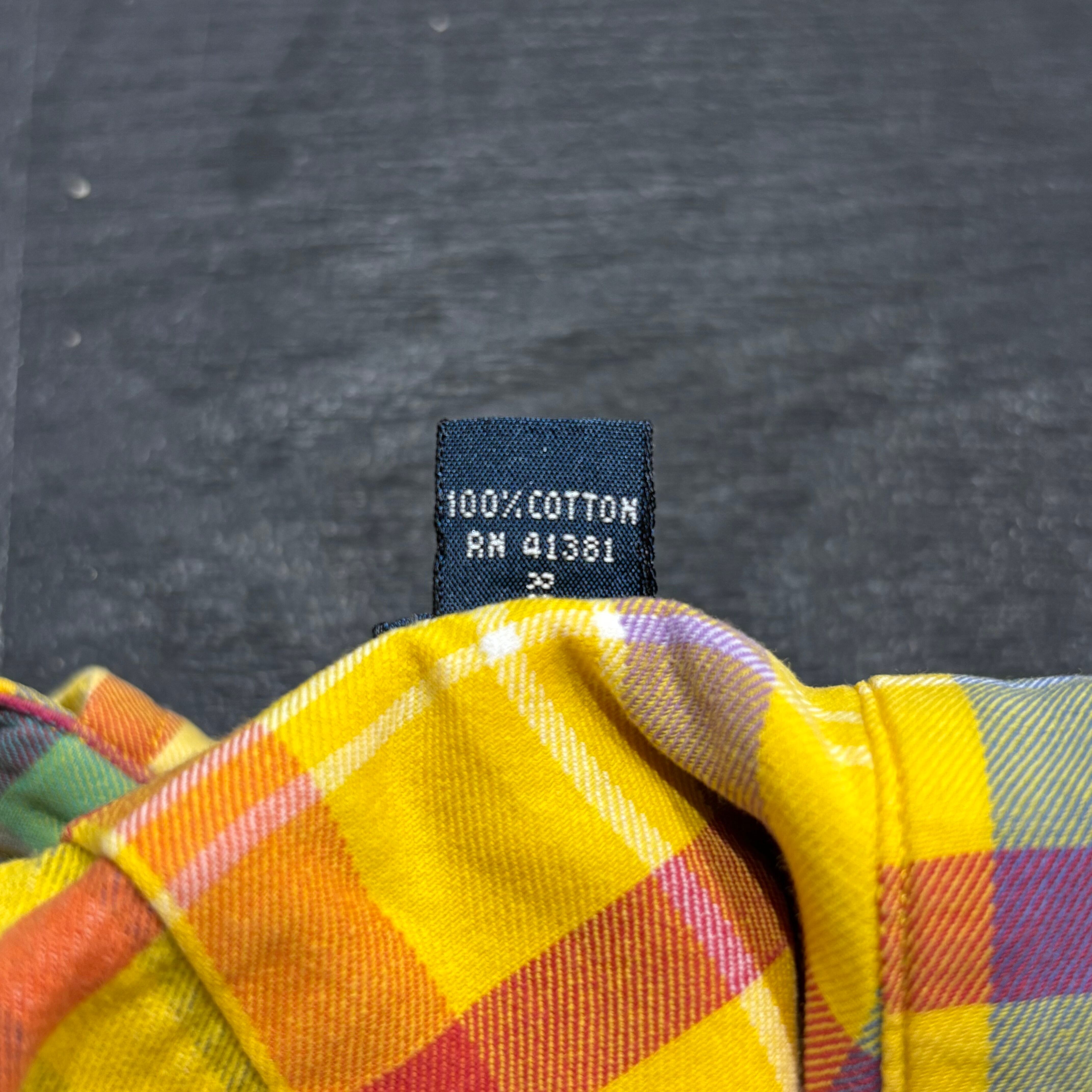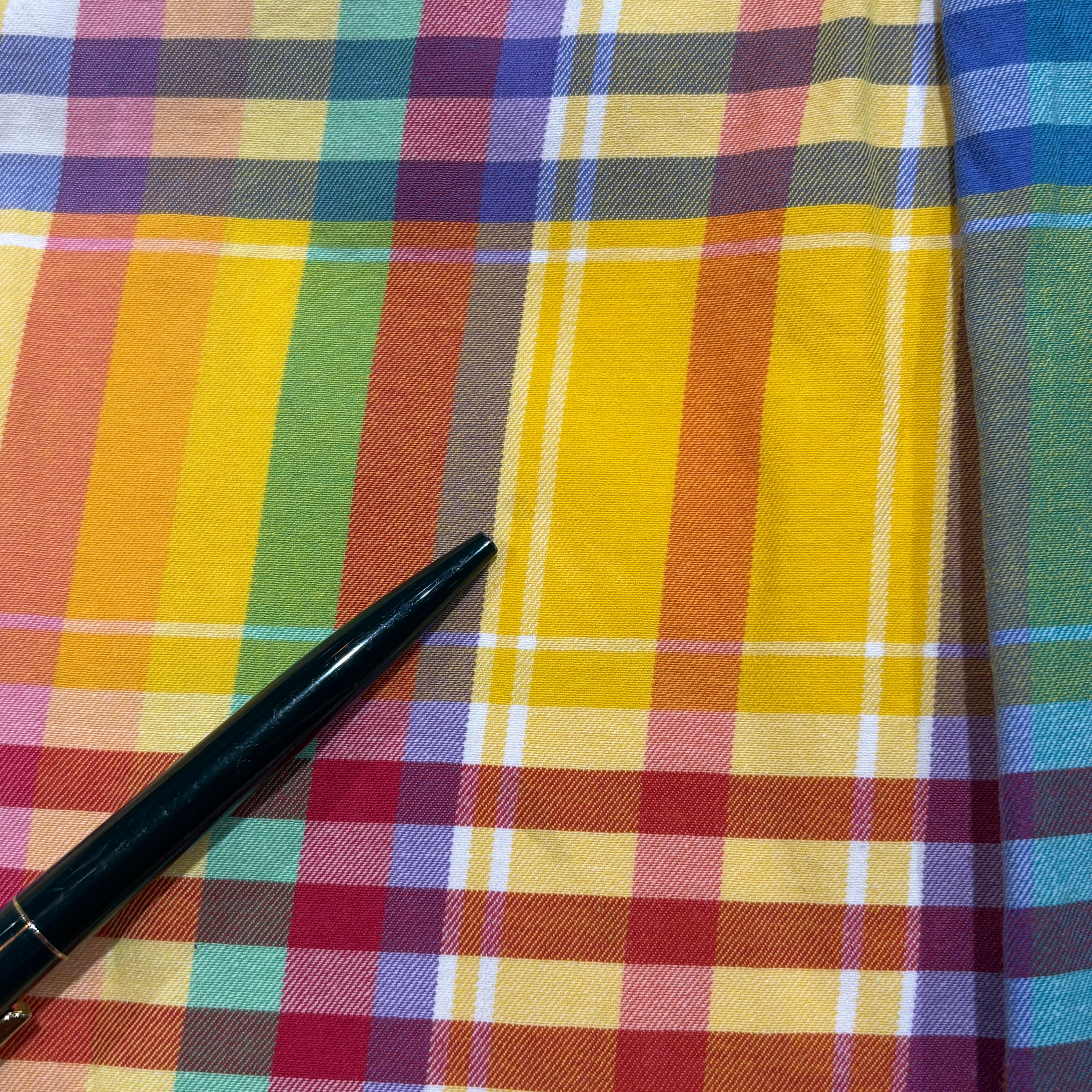 黄色ベースのマドラスチェックのカラーリングがグッドな一着です。意外とない配色かなと思います。身幅広めのLなのでゆったり着ていただけるシャツでございます!