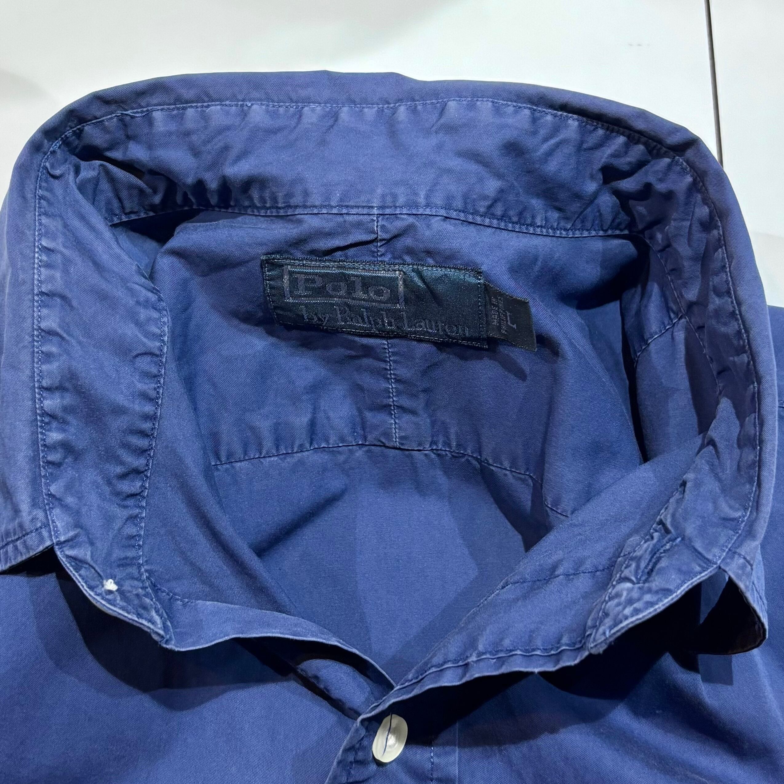 90〜00s Polo by Ralph Lauren 無地シャツ ネイビー フラップポケット