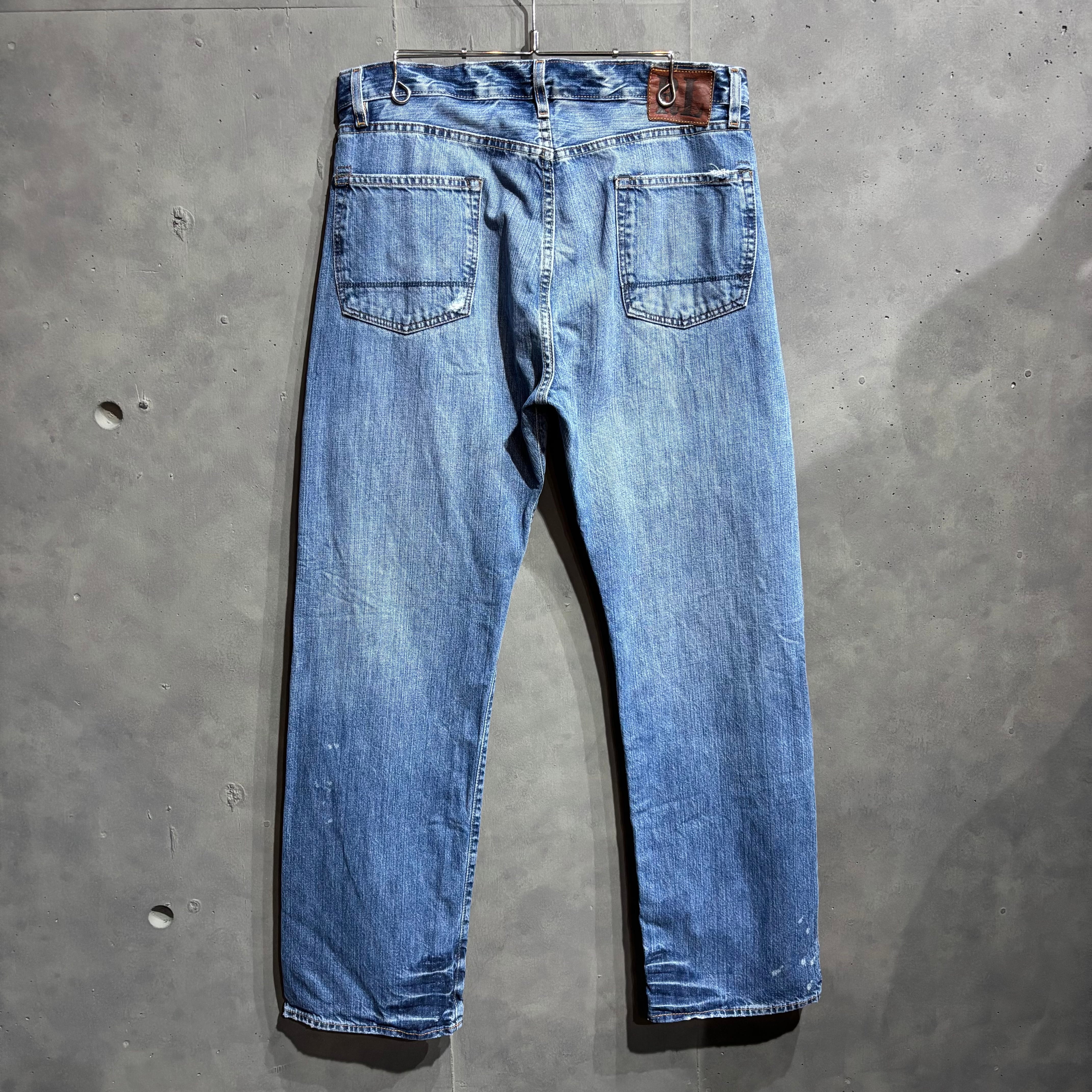 雰囲気抜群なPOLO JEANSのダメージデニムです。色落ちの感じも良くPOLO JEANSの中ではクオリティ高いほうだと思います。シルエットはストレートになっております。