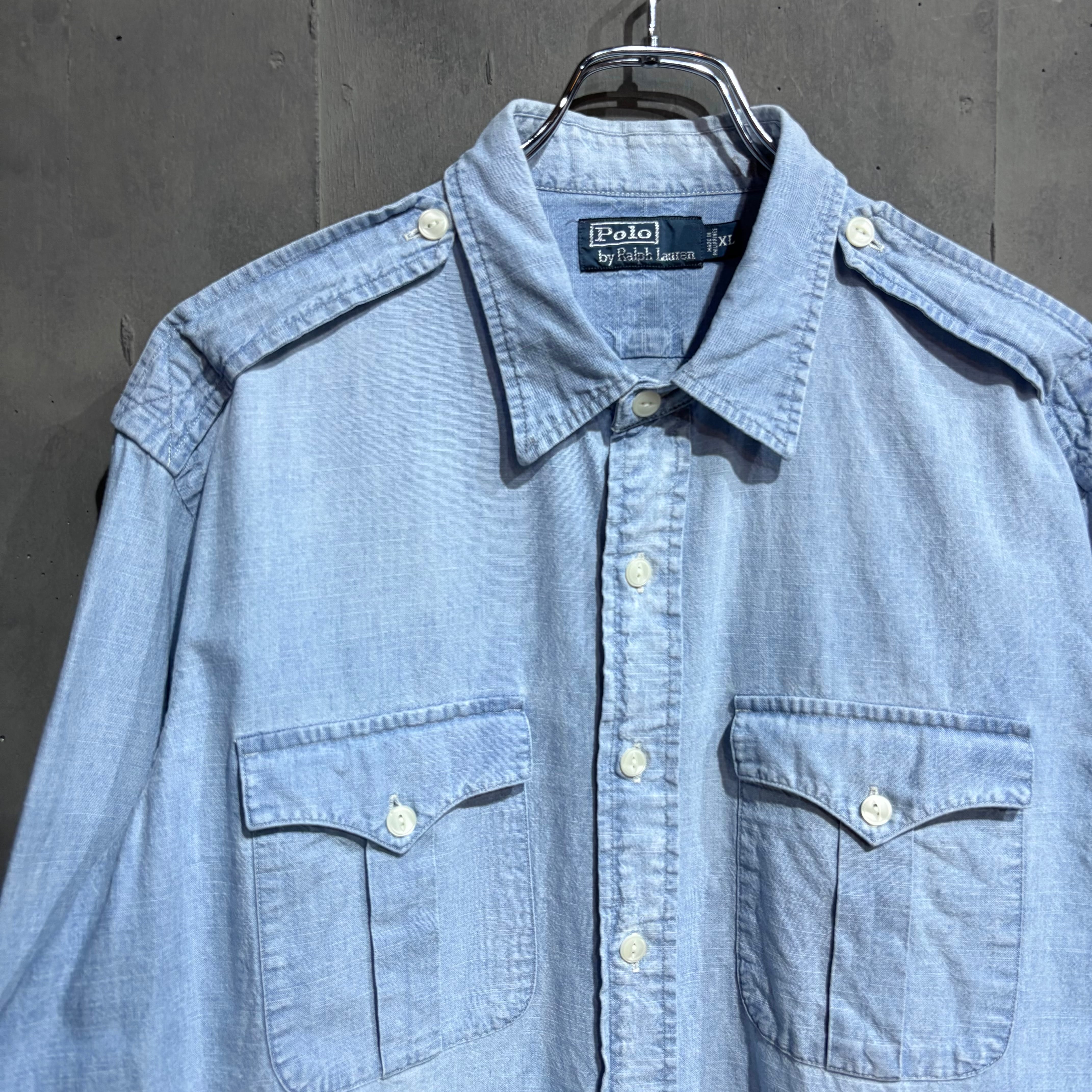 サファリシャツタイプのシャンブレーシャツです。シャンブレーシャツでこういったデザインは意外とないかと。ラルフローレンならではなアイテムをこの機会にぜひ!