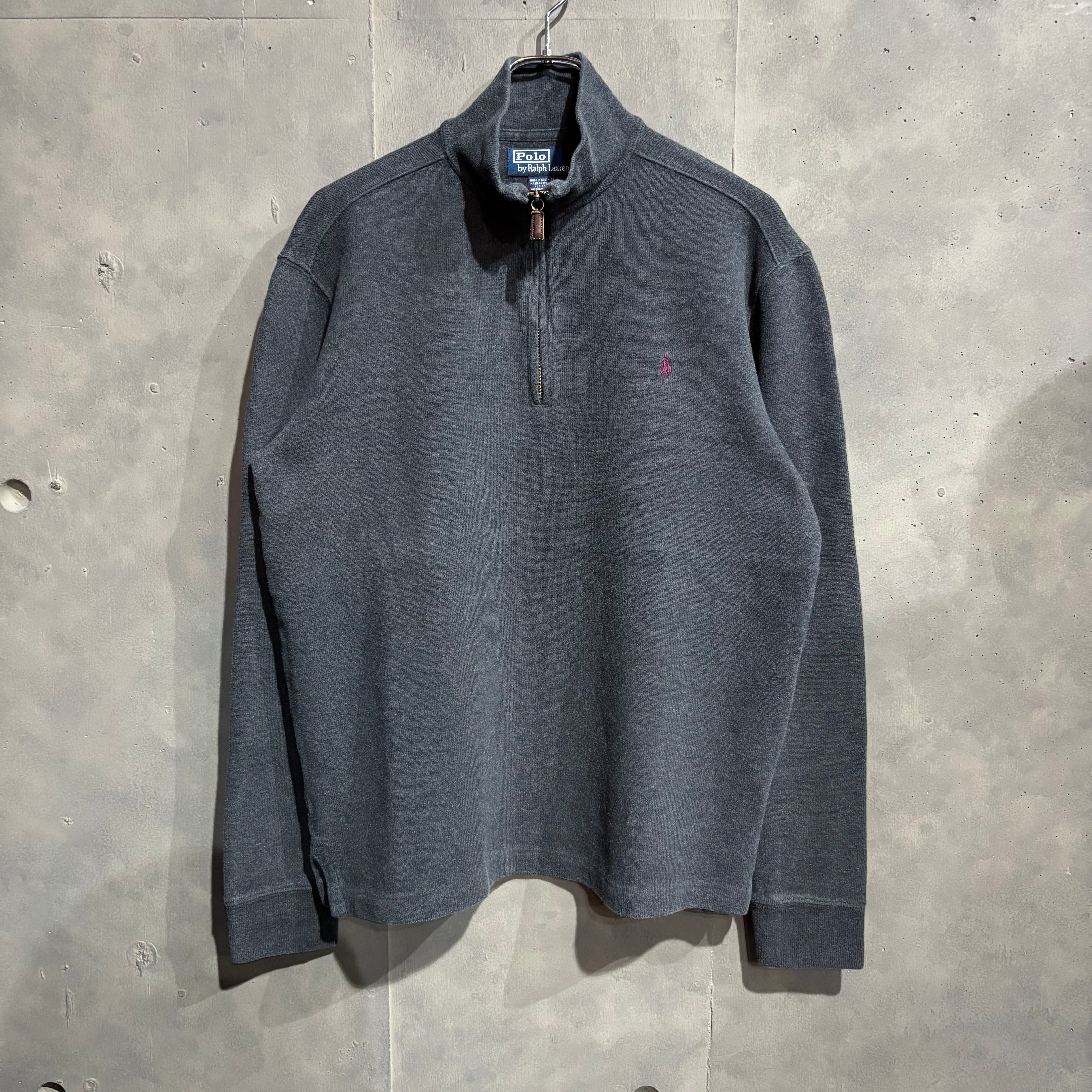 スウェットのような質感のコットンニットでこちらはチャコールです。ジップアップしても良し、折り曲げて襟をつくっても良しな汎用性の高いアイテムです。シャツとの重ね着がおススメです!