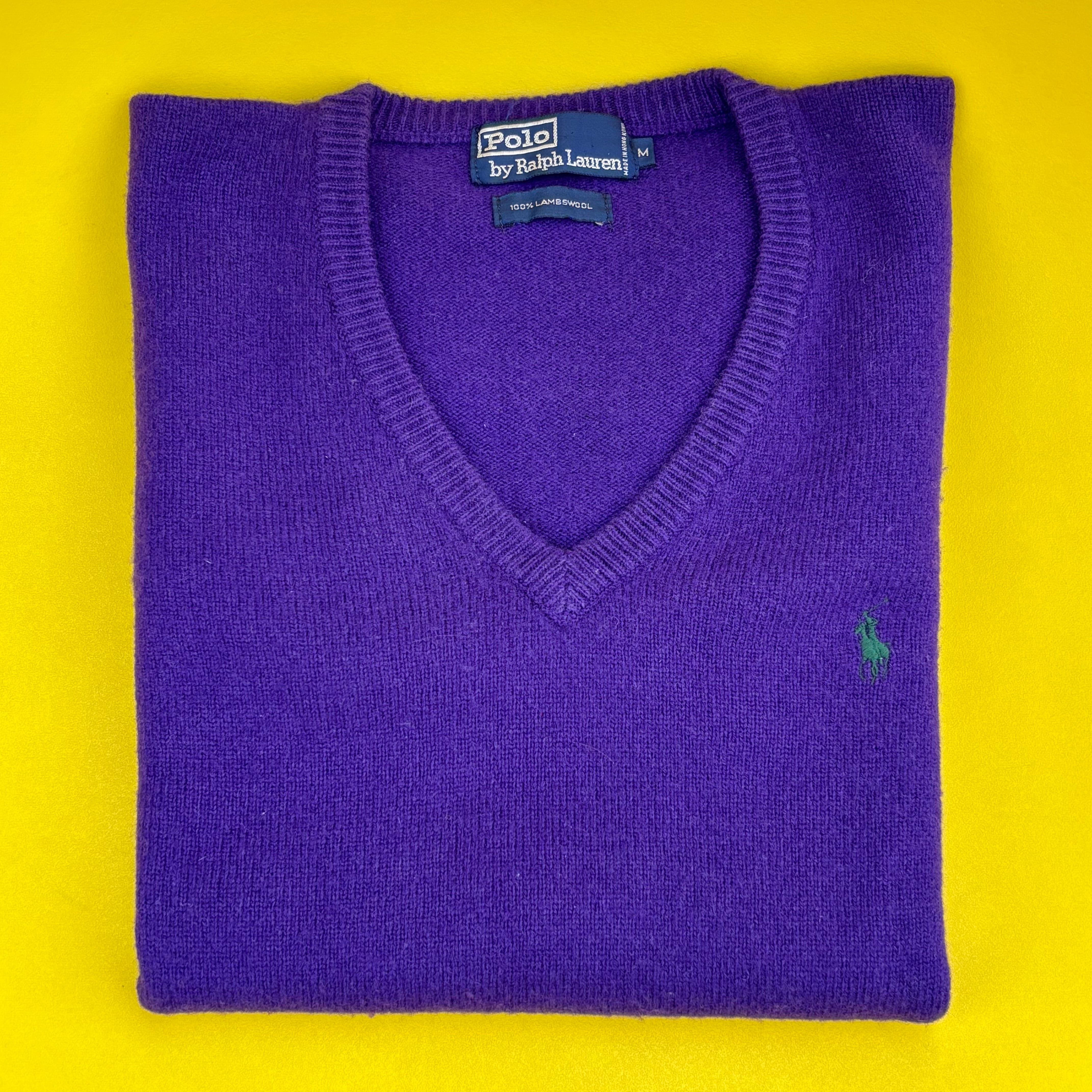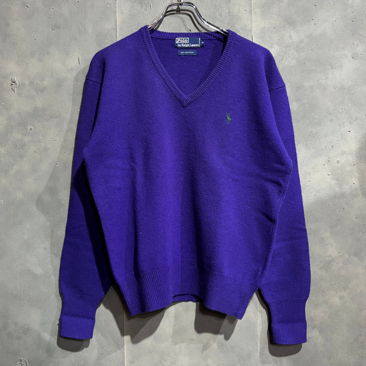 ラムウールニット Vネックセーター パープル 90〜00s Polo by Ralph Lauren
