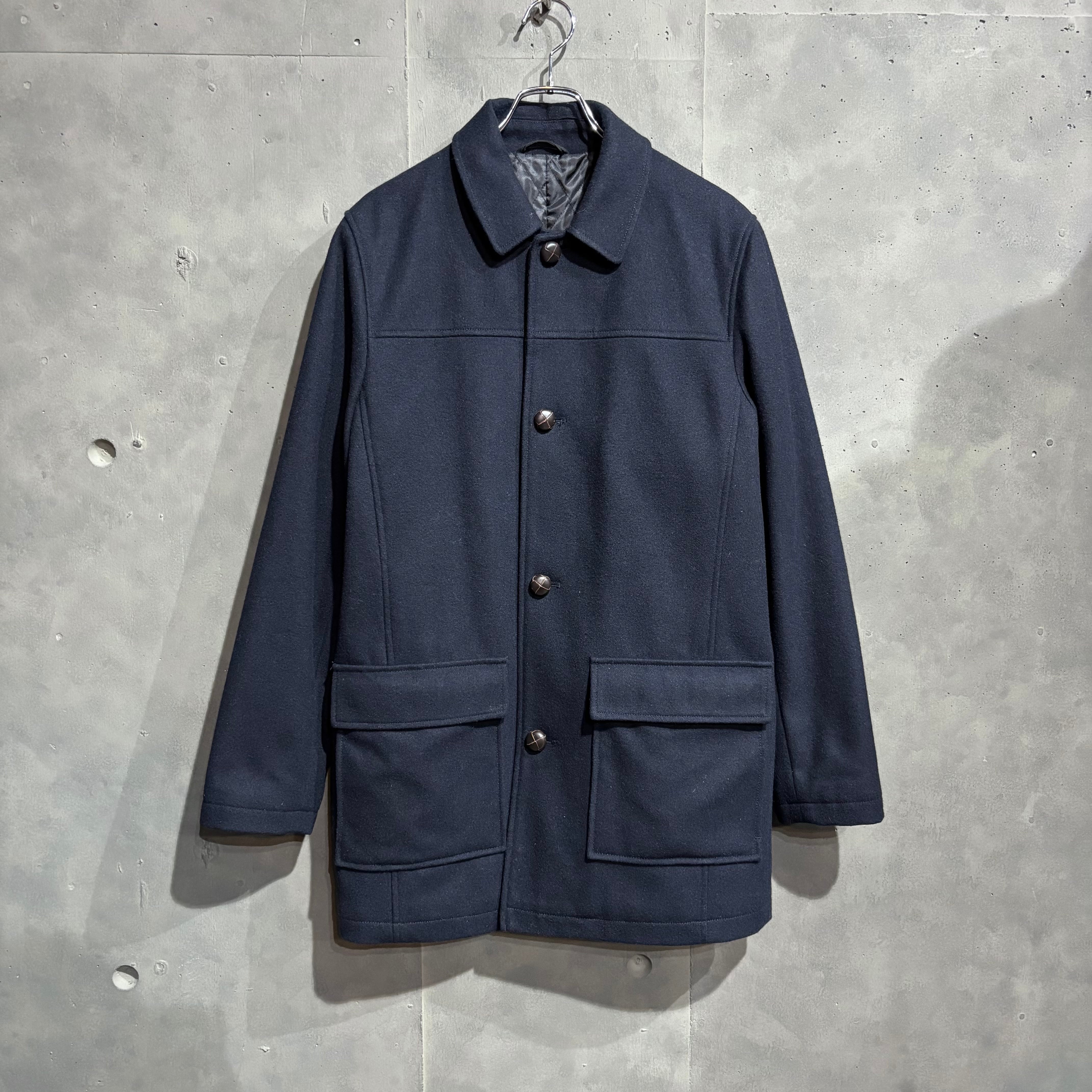 濃紺のステンカラーコートなので使いやすさも◎。