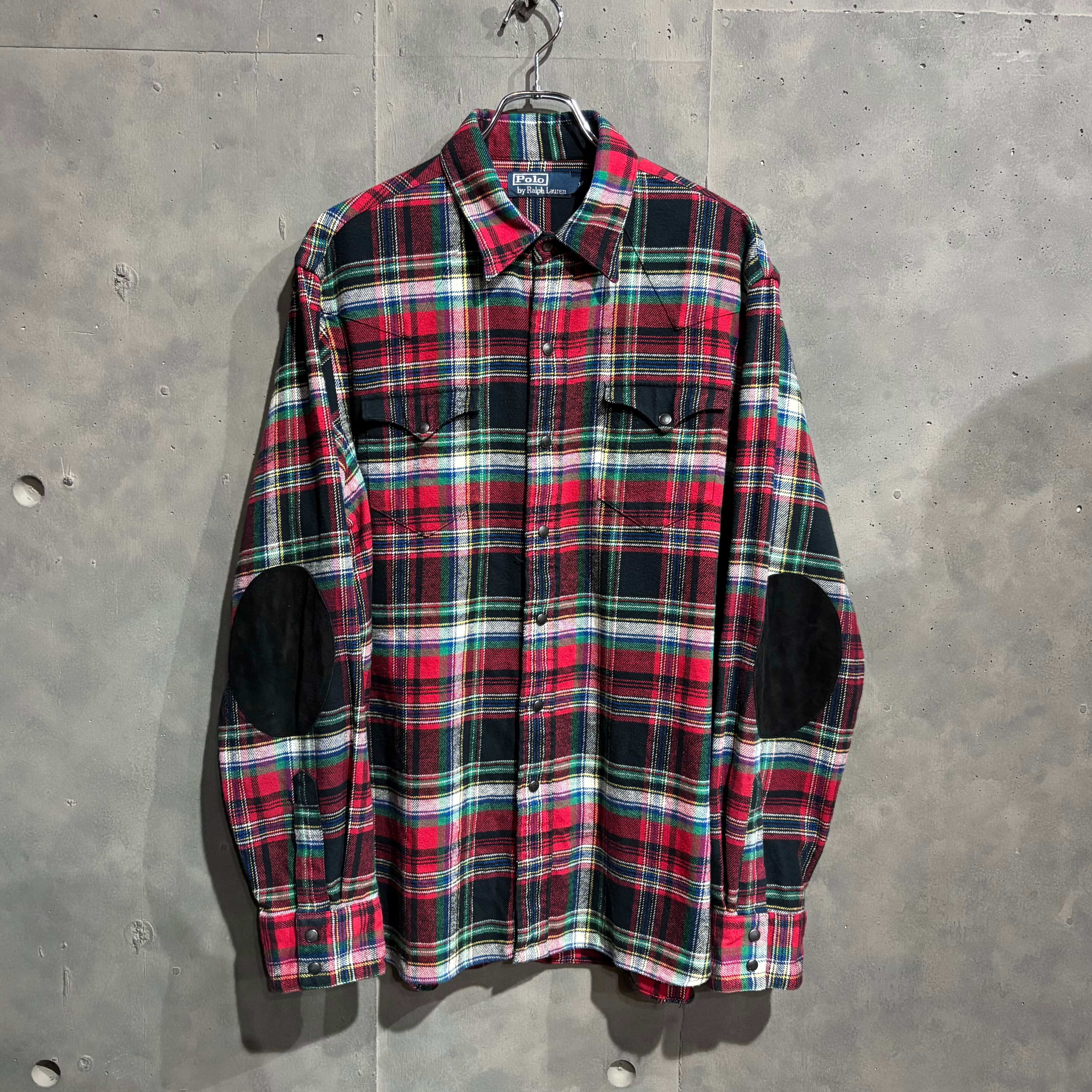 ウエスタンチェックフランネルシャツ エルボーパッチ 90〜00s Polo by Ralph Lauren