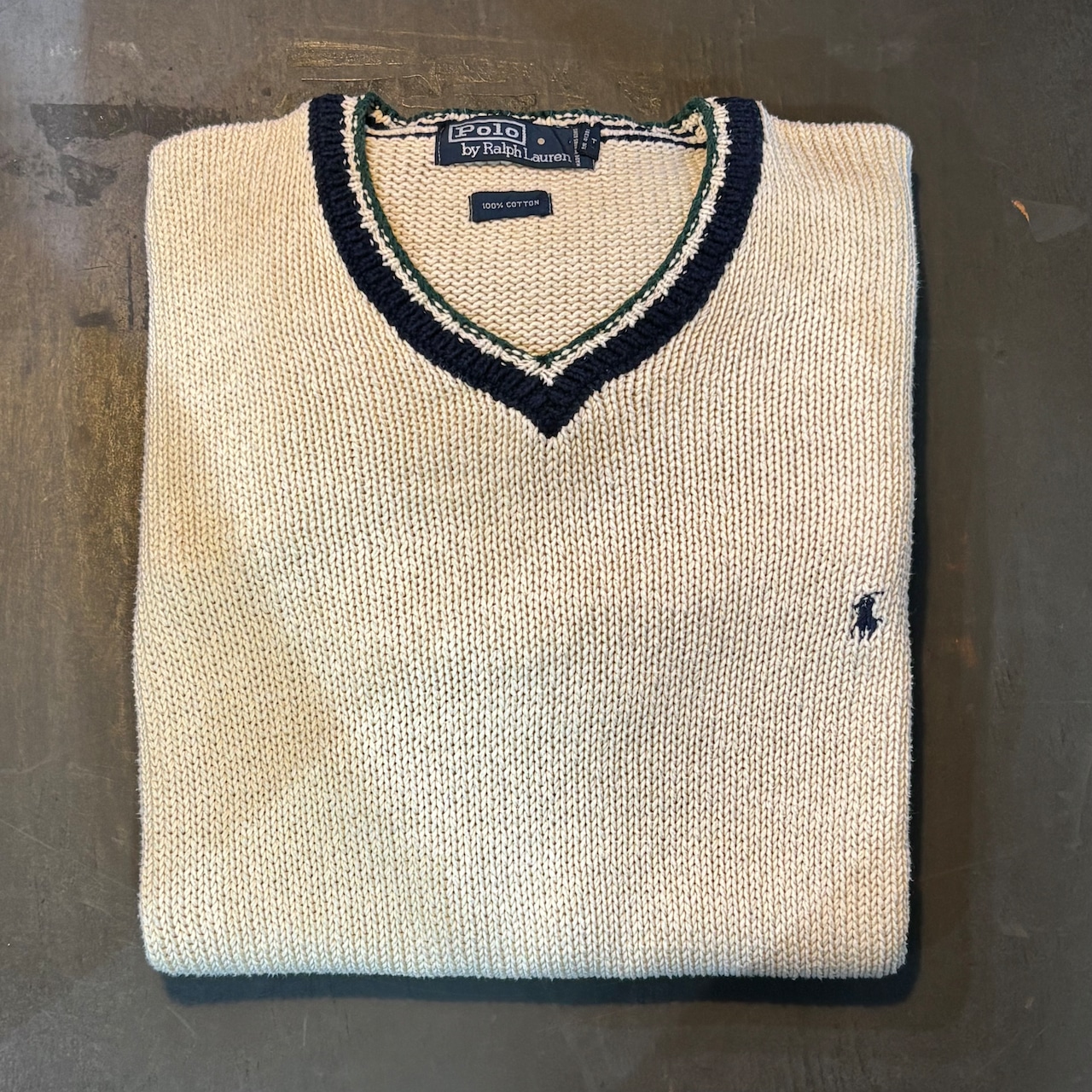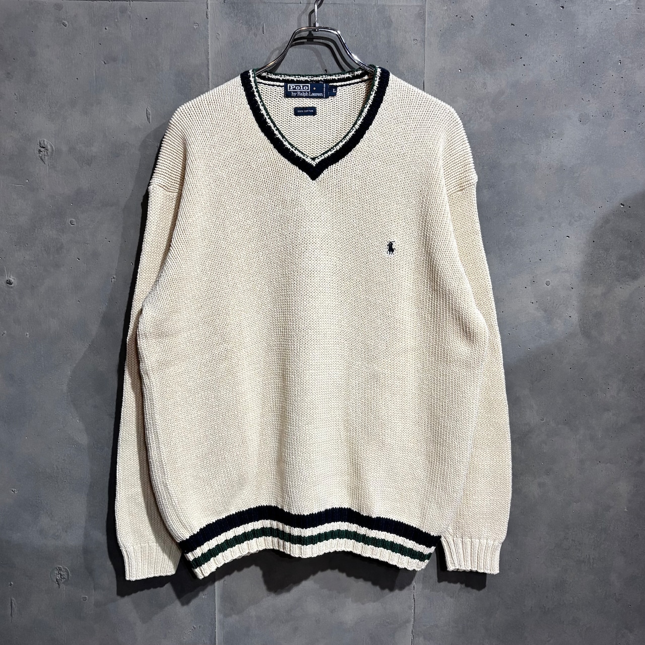 Vネック リブライン コットンニットセーター 90〜00s Polo by Ralph Lauren