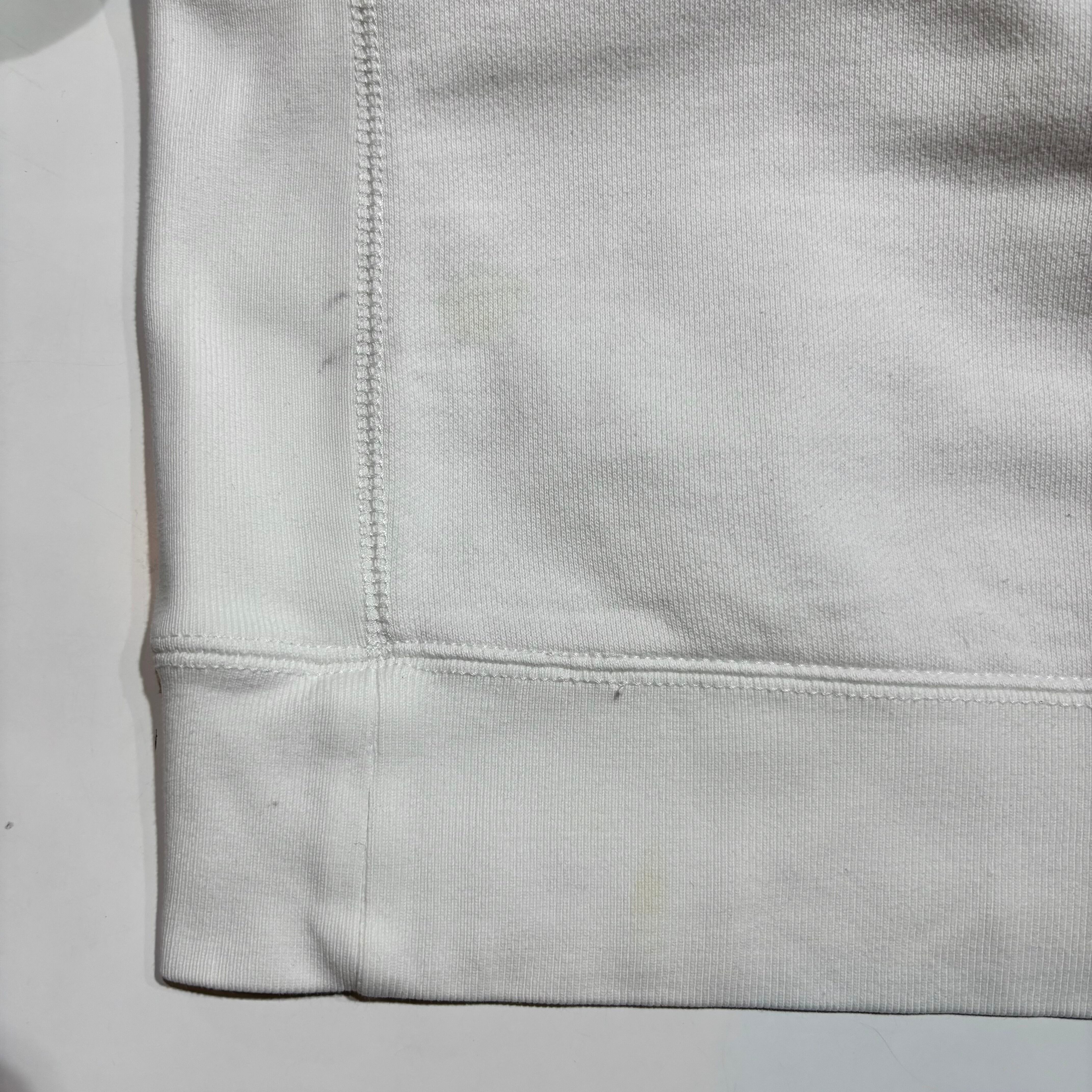 フード、フロントポケット付近、左腰辺り、右手首辺り、左肘辺りに汚れがございます。