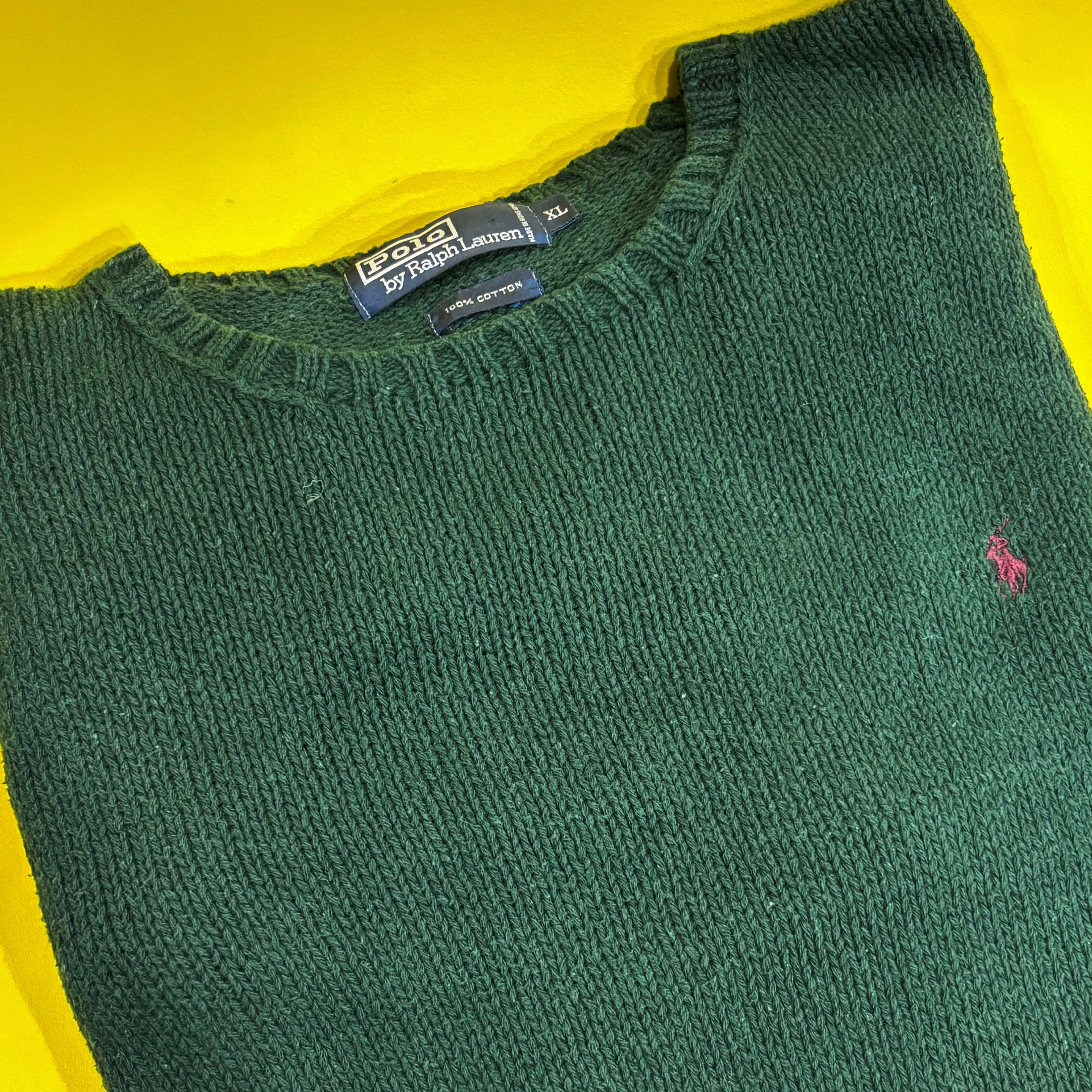 コットンニットセーター ダークグリーン 90〜00s Polo by Ralph Lauren