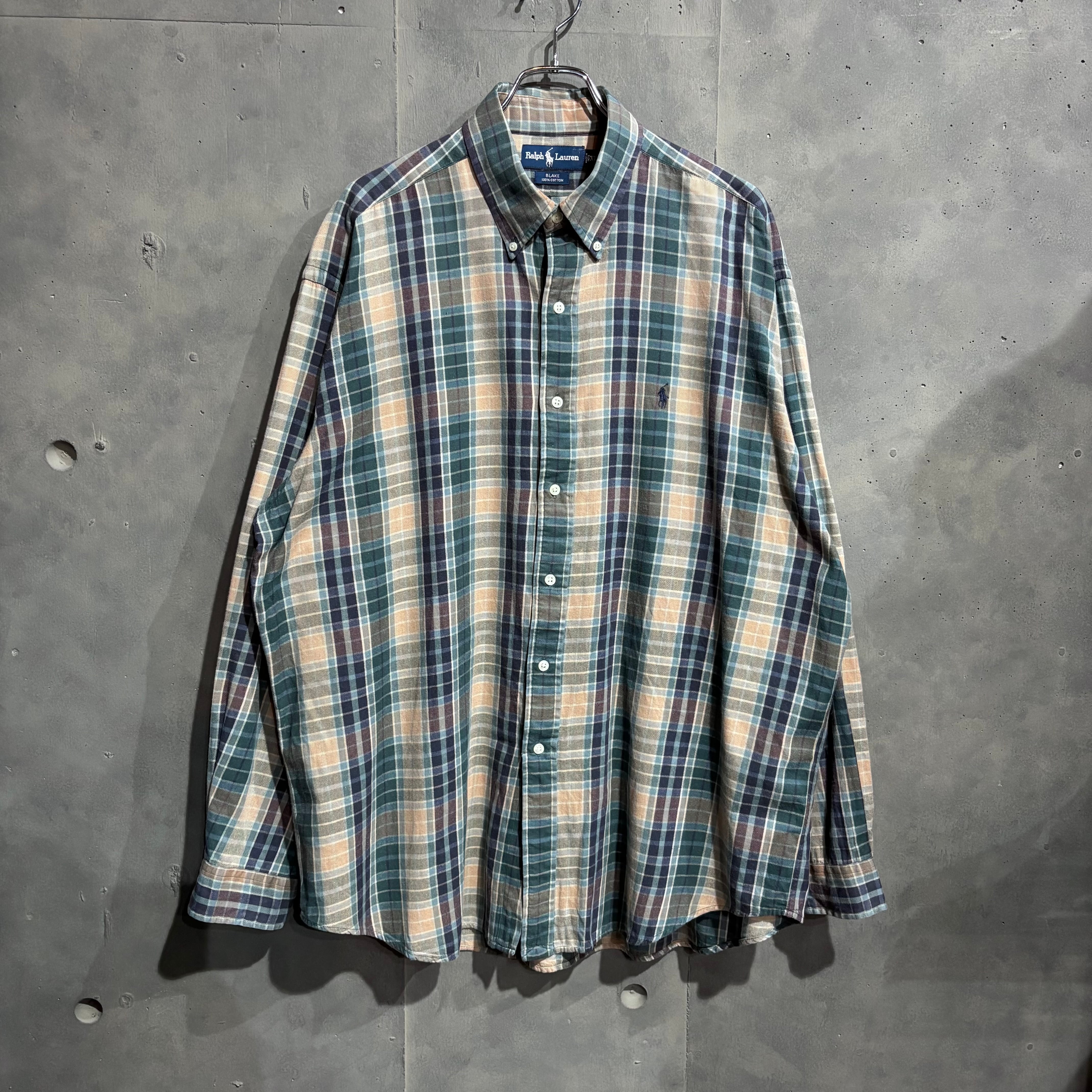 BLAKE チェックシャツ ベージュ×グリーン 90s Ralph Lauren