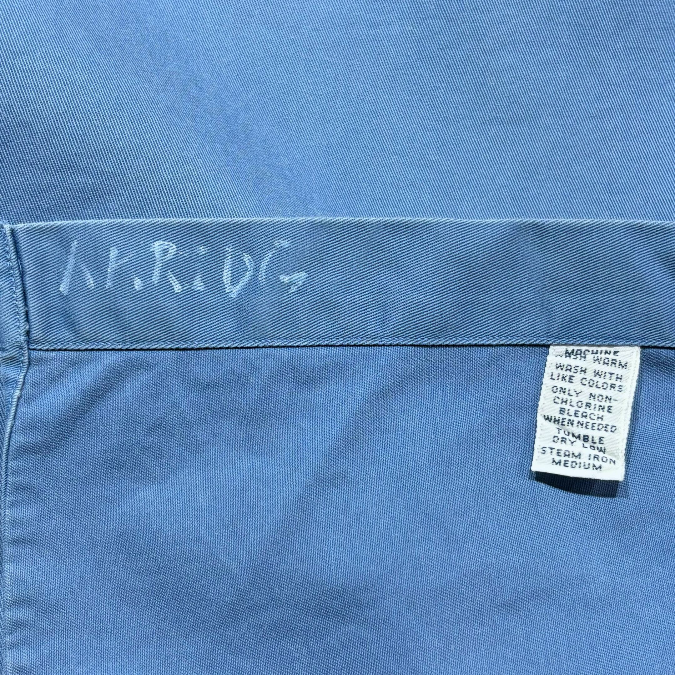 くすんだブルーにハリのある生地よってワークシャツのような雰囲気も出ている一着です。